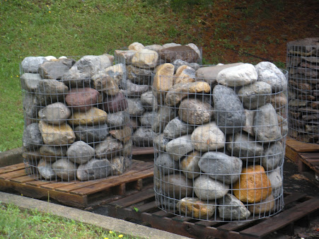 I don't know anything about rocks except what I read about in D-I-Y projects. I asked for advice and they steered me in the right direction. The bulk gravel came the same day and was way cheaper than buying it by the bag from the home improvement stores. The ledges were something I could only get at Polowy and they even cut it down to the length I needed, which saved me renting a special saw. The slate was about the same price as concrete pavers from the home improvement stores but it's slate and looks very fancy. Plus, the slate or bluestone, I think it is, wasn't all beat up and scratched, so it looked good as soon as it was put down.