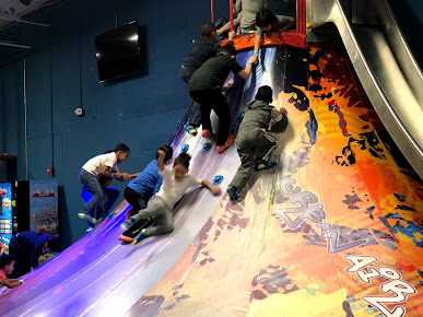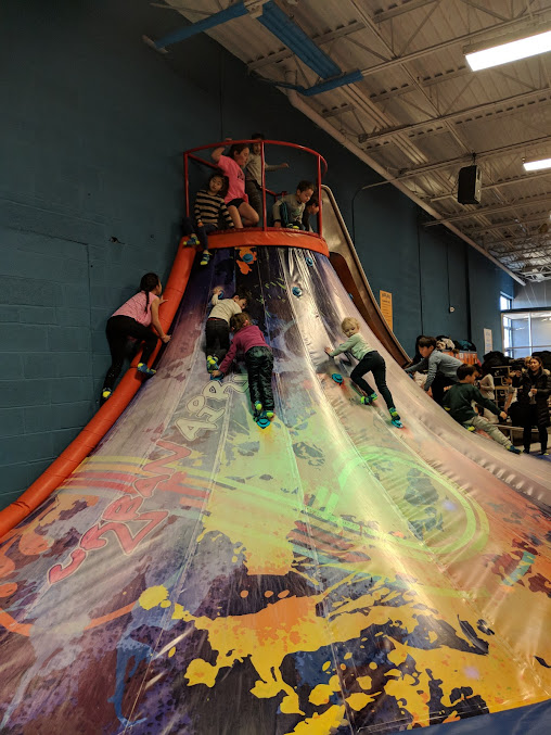 So much for the kids to do! Trampolines, dodgeball, basketball, airbag, fighting on beams, net trampolines, obstacle courses, rock walls, play areas, slides, and more! Great experience, way better than Skyzone!