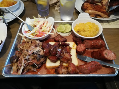 Delicious! We had ribs, pulled pork, brisket, turkey, and smoked chicken wings (surprisingly one of our favorites). The quality in the meat and sides was great. We were a little sad we missed the burnt ends (as the Mrs said it is to be expected because you don't want to have a lot of leftovers). It was a delightful atmosphere and the service was good. I loved the pickles and brussel sprouts (wanted to try so much more). The family enjoyed the mac and cheese, but it wasn't very creamy as some might expect. Drinks were good (margaritas).