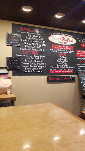 Moe's is interesting. They have good food, excellent wings. They seem to be a cross between a BBQ joint and fast food, though clearly better than fast food. They do catering though I've never tried them for this. They have their BBQ available a la cart in pound quantities. The staff is exceptional, the prices are very reasonable. They have alcohol available and a drive thru window. I love the menu, simple and with daily changes. Lots of southern favorites. I like their grits and cornbread.